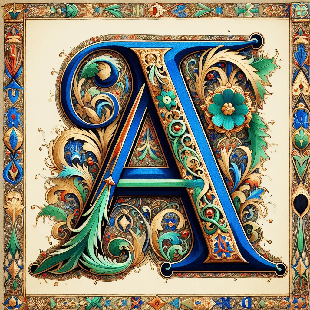 В средние века искусство росписи букв достигло своего расцвета в Европе. Монахи-скрипторы украшали манускрипты изысканными инициалами, среди которых буква "А" занимала особое место. Эти инициалы были не только декоративными элементами, но и носителями символического значения.